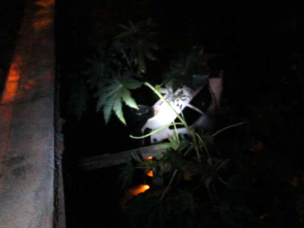 Depois de derrubar os ocupantes do veículo de duas rodas, ele seguiu com o carro desgovernado por mais 50 metros e despencou da ponte que passa em cima de um córrego.