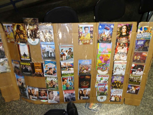 Alguns exemplares estavam colados em um papelão e outros em uma bolsa de couro. Um total de 257 mídias pirateadas foram apreendidas, sendo 231 DVDs e 26 CDs. O suspeito foi encaminhado à 93ª Delegacia de Polícia.